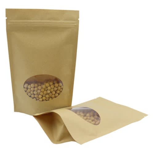 Design: The brown kraft paper stand-up pouches with matte transparent window are laminated and waterproof. They have the secure zip lock closure which ensures airtight sealing, keeping your items fresh and preventing leaks.