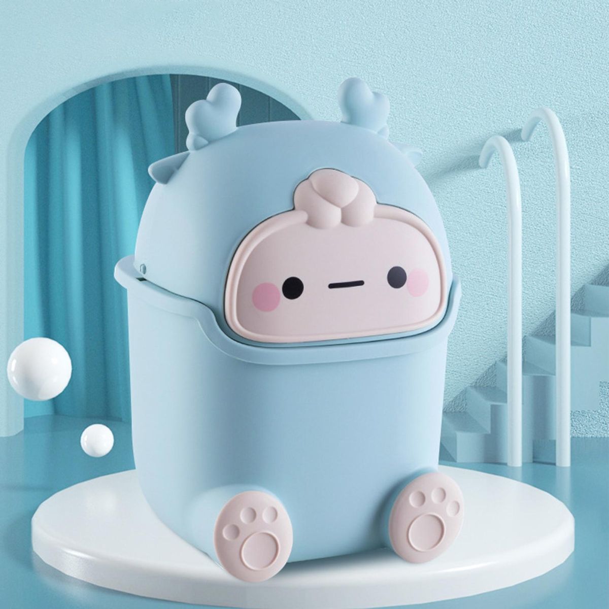 Designed with cartoon animal shape, this storage bucket is very cute and can decorate your room well. Besides, it features a wide mouth and pressure ring design, making it easy for you to use.