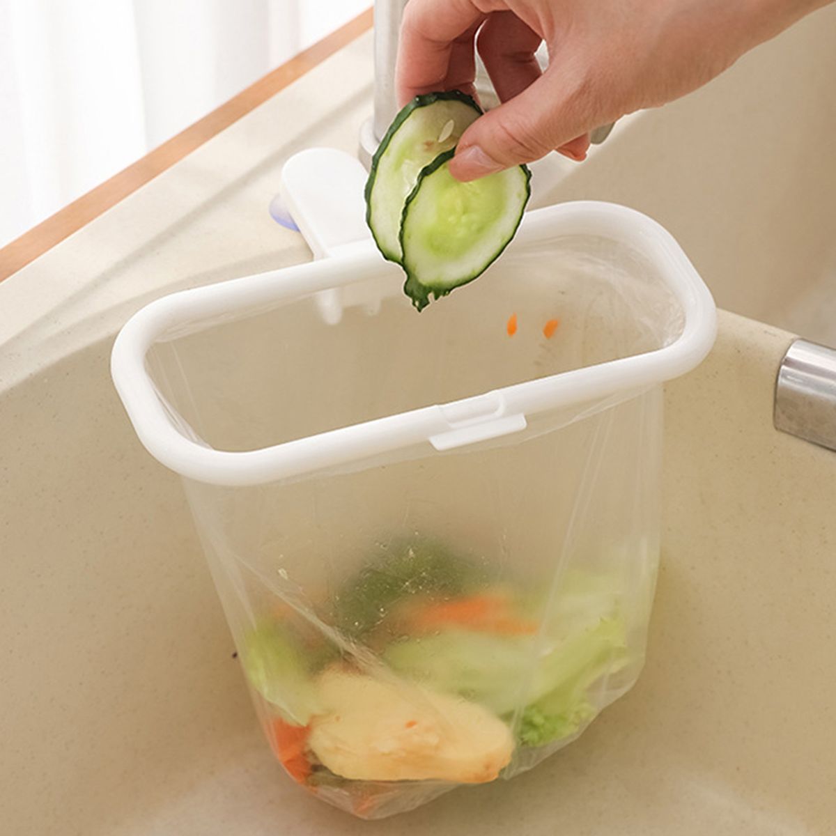 These trash bag holders can be matched with different kinds of waste bags. It offers you a great aid in storing waste papers, tissues, crumbs, peelings, food residue, leftovers and more.