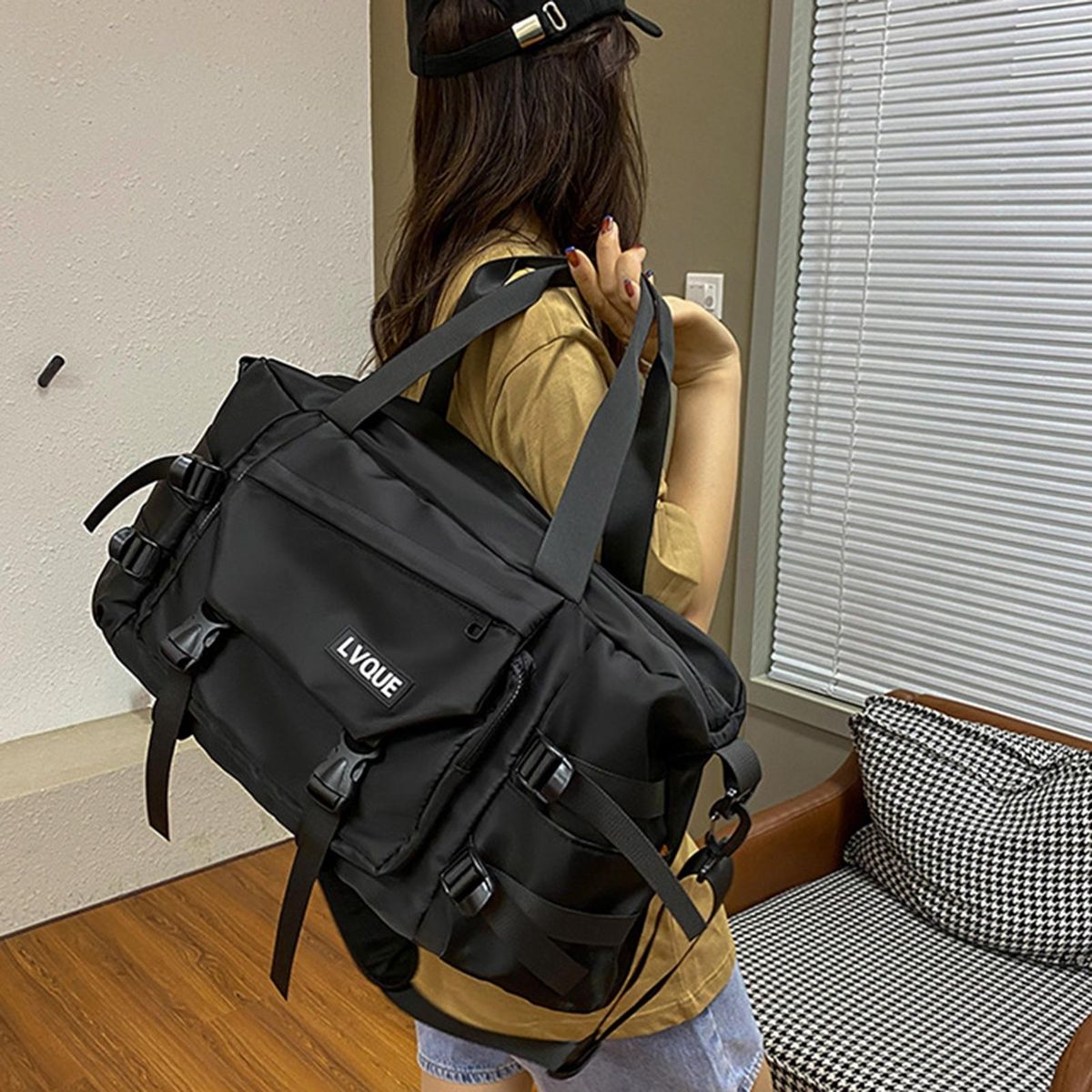 There is a comfortable handbag handle, which is ergonomically designed to carry long without strangulation. Shoulder straps with live opening and closing, free disassembly, easy to change the backpack method, the shoulder straps can be freely adjusted according to the needs of the length.