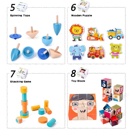 These are 10 options educational toys travel iron box series which are easy to carry.
