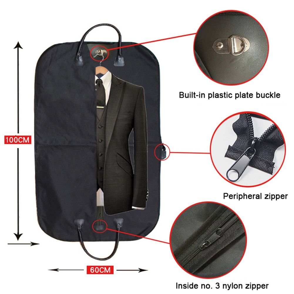 Specification: The faux leather handle improves comfort of the hand grip and has the visual high quality feeling. Oxford cloth edging, durable, built-in hardware buckle, solid color, stylish and practical. Waterproof and dust-proof, convenient for hanging the suit. Type: Suit Storage Bag Material: Oxford Cloth + Faux Leather Features: Solid Color, Zipper Closure, Portable Size: 105cm x 60cm/41.34" x 23.62" (Approx.) Notes: Due to the light and screen setting difference, the color of the item may be slightly different from the pictures. Please allow slight dimension difference due to different manual measurement. Package Includes: 1 x Suit Storage Bag (Others Not Included)