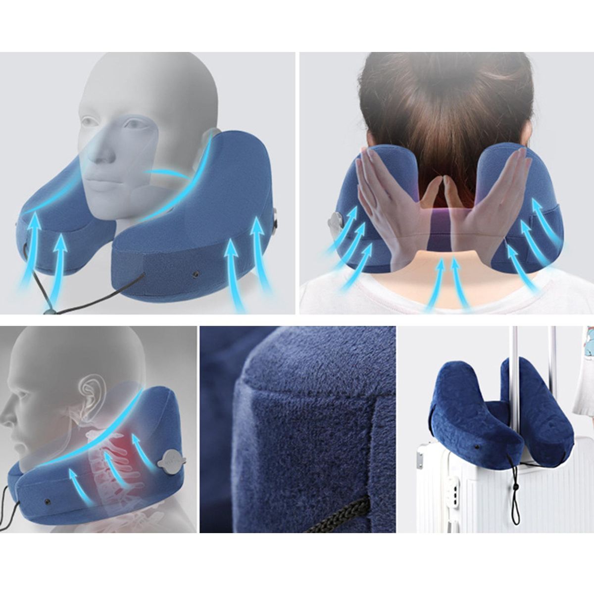 FAST INFLATION: With a 4cm large diameter inflation port, the travel inflatable neck pillow inflates quickly and easily without the need for an air pump, portable and lightweight, provide good support.
