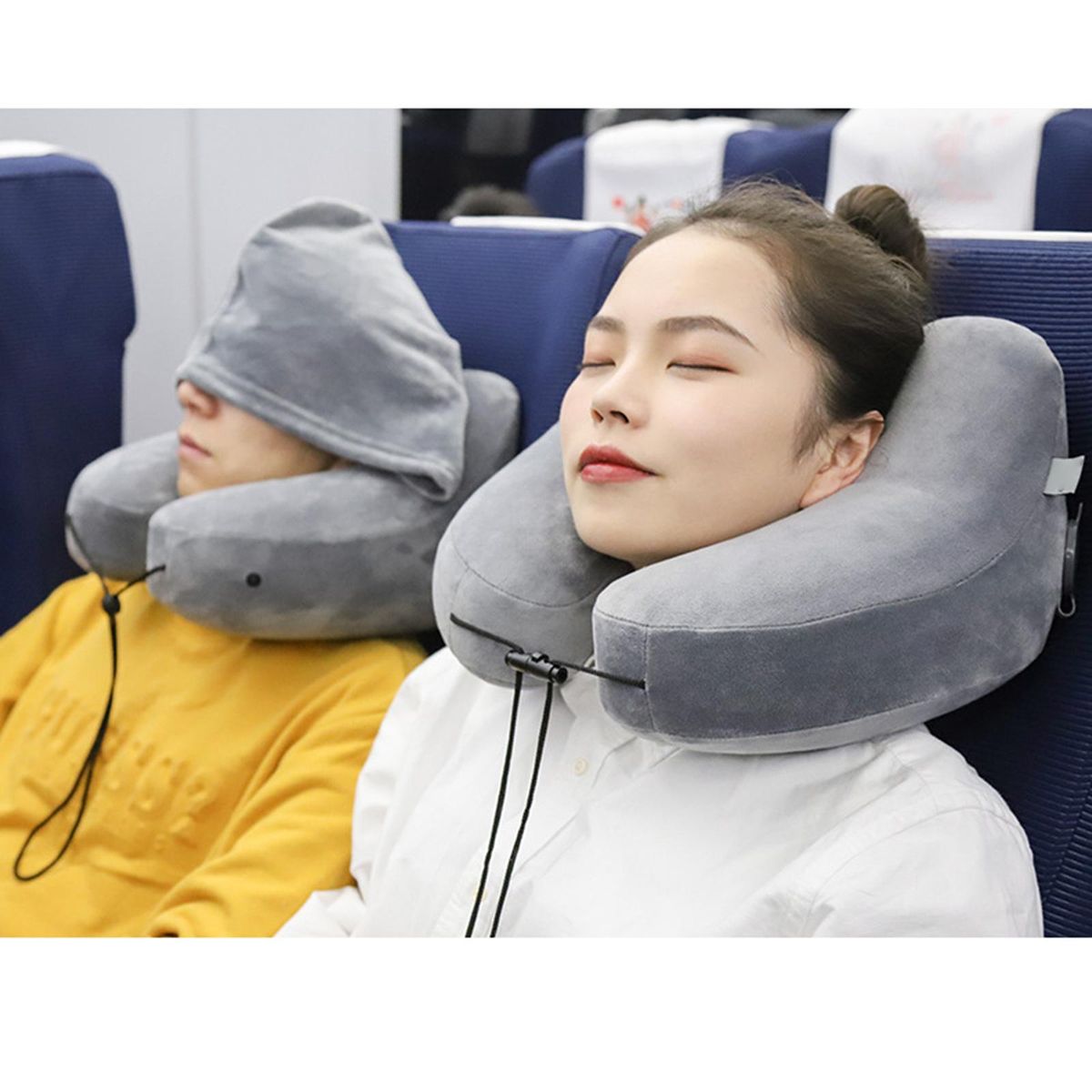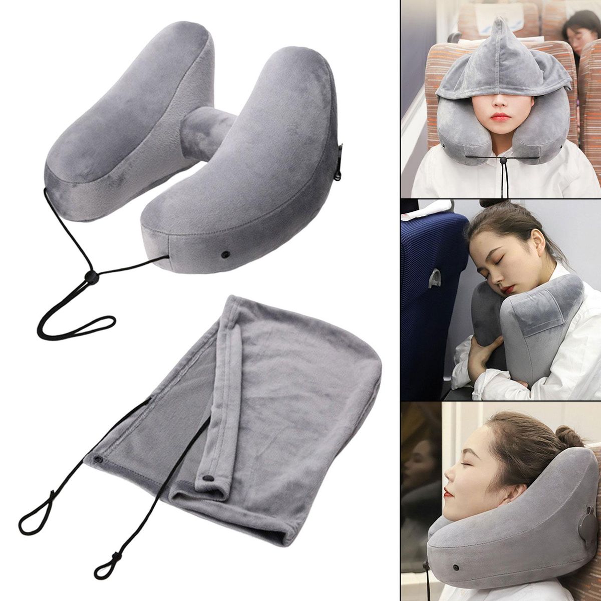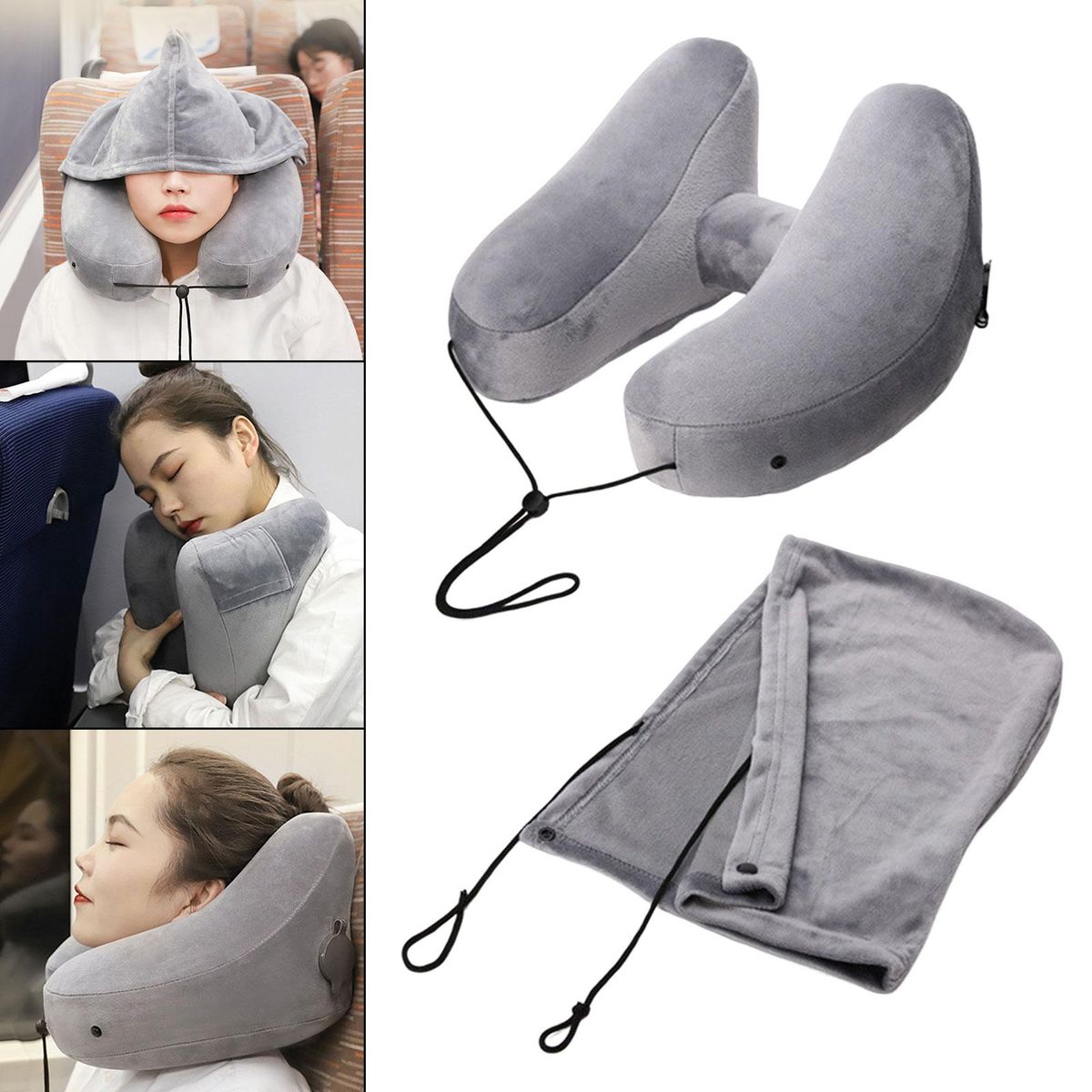 travel neck Pillow;Hoodie Travel Inflatable Neck Pillow Airplane;Neck Travel Pillow with Hoodie Head neck Support;Ergonomic Neck Pillow Hoodie Traveling Pillow;Hooded Neck Pillow Train Car Cushion Adjustable;Office Napping Pillow Hood cap Washable Cover