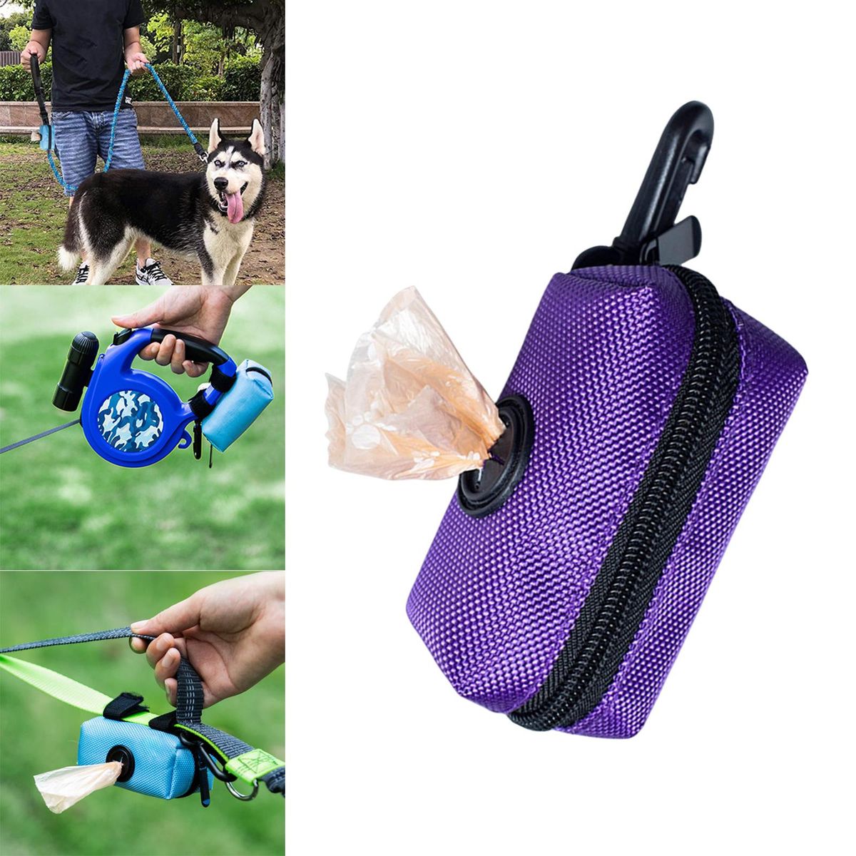 Equipped with durable metal zipper and a carabiner clip allows you hanging it onto your dog leash, waist belt or backpack.