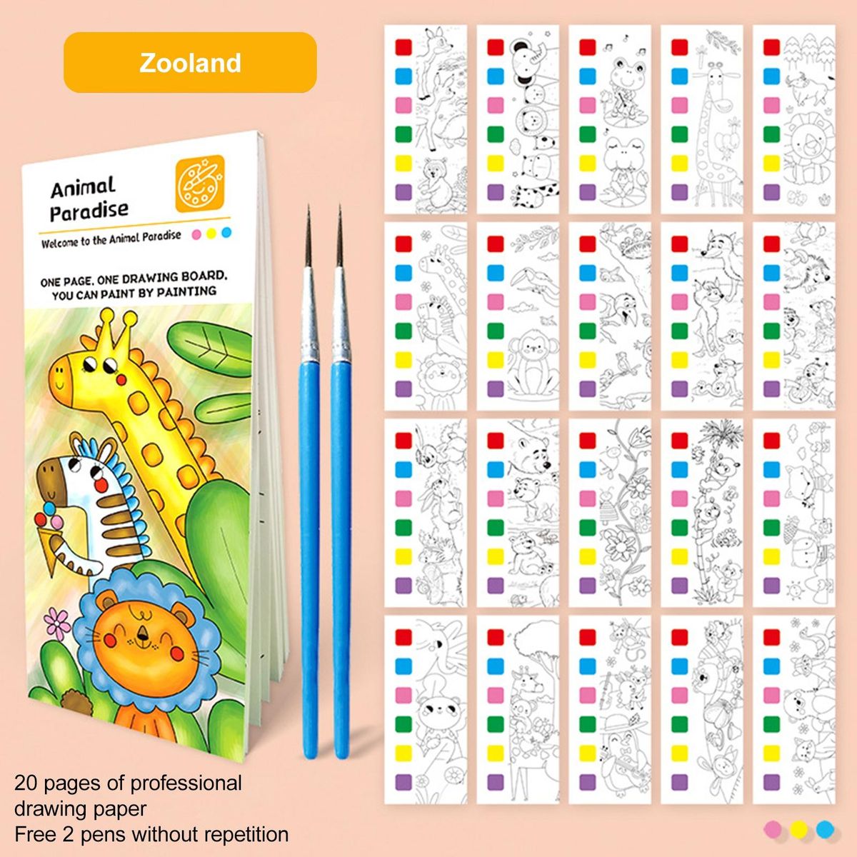 But the fun doesn't stop there. once the watercolor book is complete, the palette can be torn off along the dotted lines and transformed into a watercolor bookmark or craft project for kids. it's not just educational, but also portable and versatile.