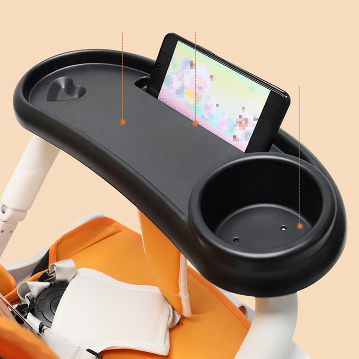 【 Snack Tray】The snack tray provides kids with storage space for easy access to drinks, snacks, bottles and toys.