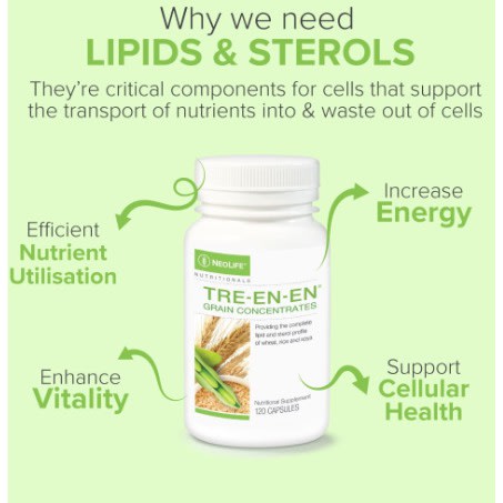 NeoLife Tre en en is the world’s first and only whole grain lipid and sterol supplement proven to enhance energy and vitality by optimizing cell membrane function. It energizes your body by helping your cells function more efficiently.If cellular membranes are starved of vital nutrients (lipids and sterols), they become inflexible and can’t perform critical functions. Whole grain lipids and sterols allow your cell membranes to become their flexible best, making it easier for nutrients to get in and waste to get out.