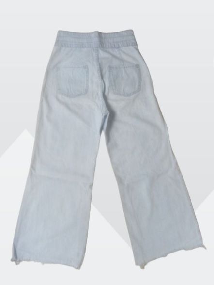 High quality.... classy.... authentic denim fabric.... fashionable.... unique design for a unique individual.... designed with front bold pockets and split lace ankles and also with trending waist rope....the colour would hardly fade because it was made from authentic denim fabric and the fabric is smooth, soft and skin friendly...this beautiful jeans can be worn by all class of ladies and it gives great fitting...it was professionally designed and sewed in china