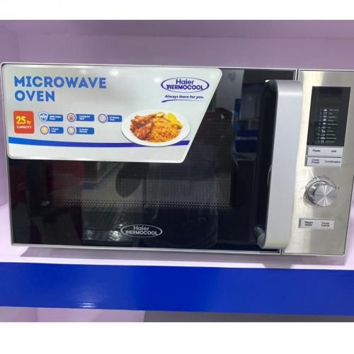 Haier Thermocool Trendy DIGITAL Electronic Microwave - PRODUCT DETAILS The ideal kitchen companion, unique present Nigerian memory cooking allows you to use your Haier Thermocool Trendy electronic microwave to prepare your favorite meals effortlessly. Simple if youa€™re in a hurry, meals are packed with flavor and cooked to perfection with over 10 power levels. The result is simple a€“ an extremely hard wearing, uniquely designed microwave custom made for your kitchen. Electronic Control Electronic control feature makes it easier to set cooking and heating temperatures. You can count on having meals heated or cooked at just the right temperature. 10 Power Levels Helps you to achieve the perfect temperature control when using your microwave oven to cook or heat meals. Customised Nigerian Menus Preset Nigerian menu memory cooking function including jollof rice, moin-moin and yam pottage. This function operates like the regular chicken and soup menus and is first of its kind in the Nigerian mark