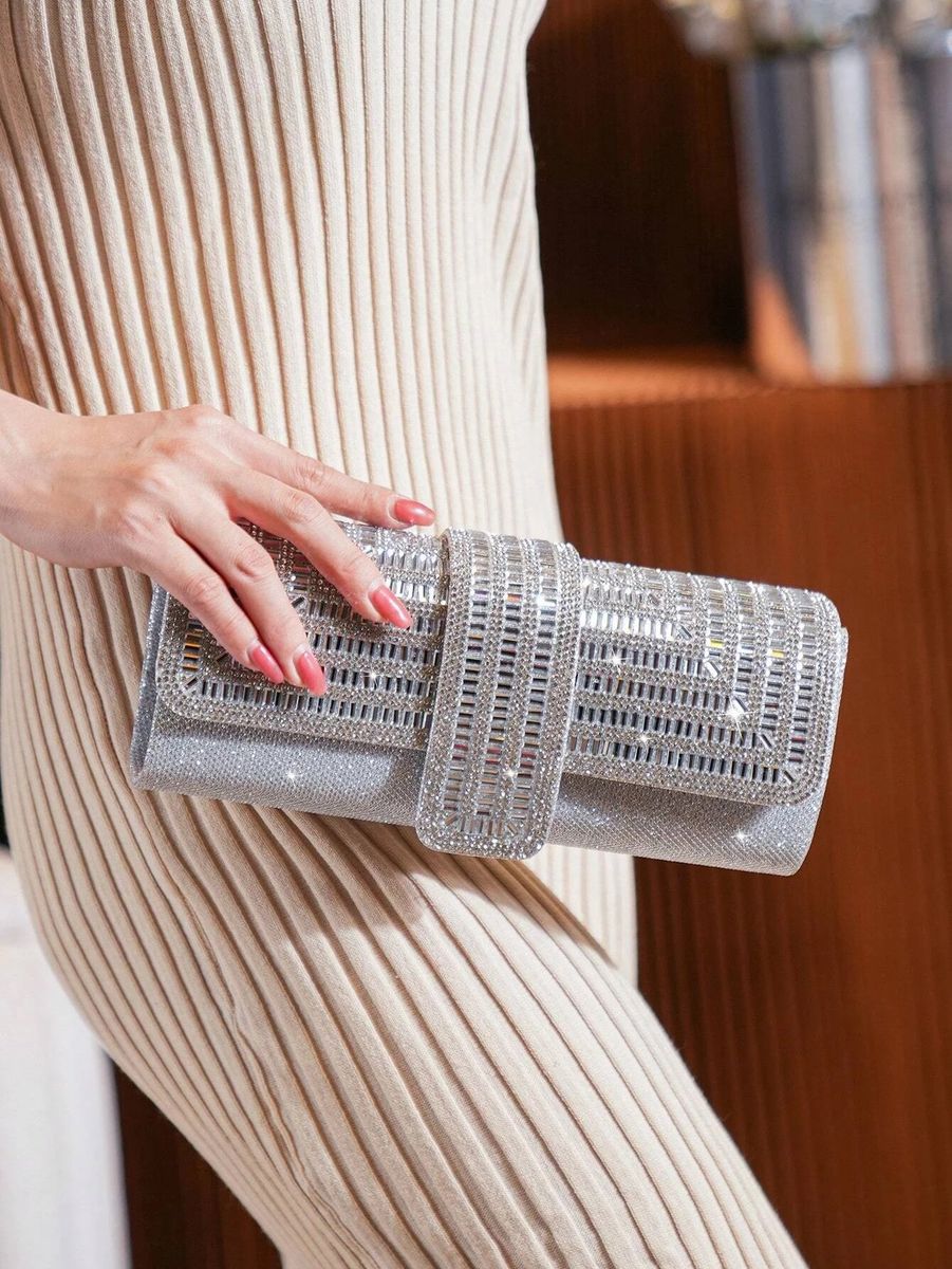 Silver clutch handbags and purses with ladies evening party bag rhinestone ladies shoulder bag luxury wedding clutch