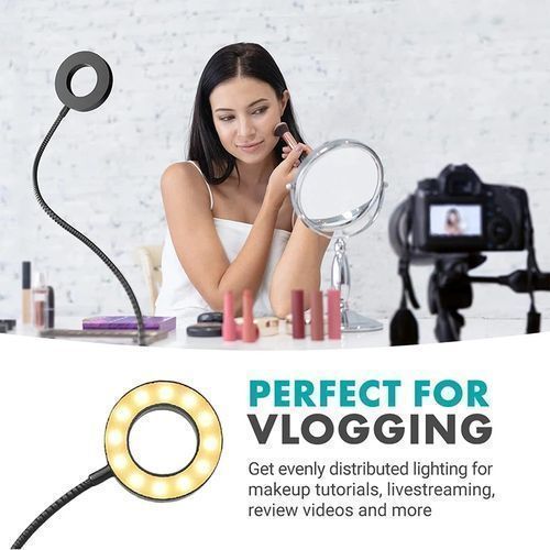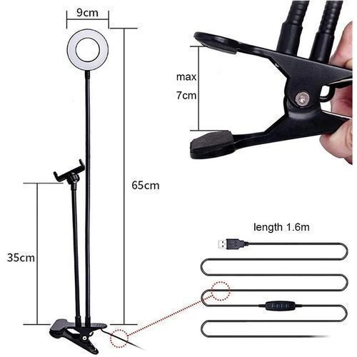 FLEXIBLE: 24 inch strong long gooseneck arm that can bend to any shape, 360 degree rotating lazy bracket clip. Adjust to any angle (face downwards, portrait and landscape) to free your hands for livestream, live broadcast, lives show, selfie or video chat, or just works as desk tabletop lamp.