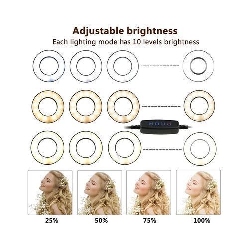 2. 3 A BRIGHTNESS & 3 COLORS LED LIGHT: The led light design with 10 adjustable brightness meets all your needs in different circumstances. It will come in handy whenever you need extra light for making up, taking photos, making videos, reading books, and live streaming!