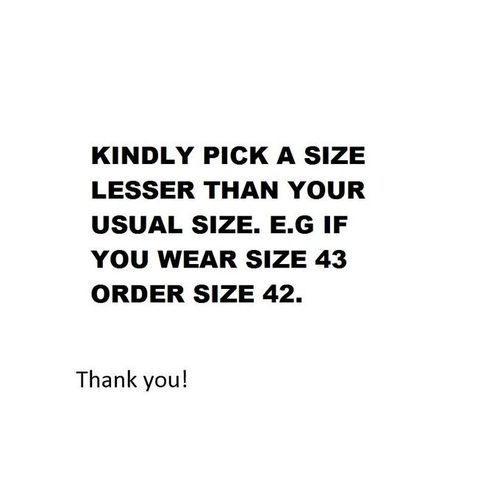 Shoe is wide fit, kindly order a size less than your normal size e.g if your normal size is 43 order for size 42.