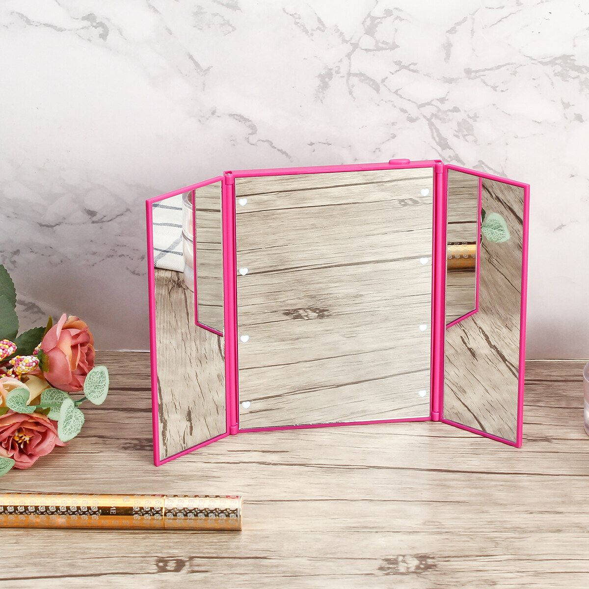 -Folding design, easy to store and carry out,after the mirror is unfolded, it is the area of three mirrors.