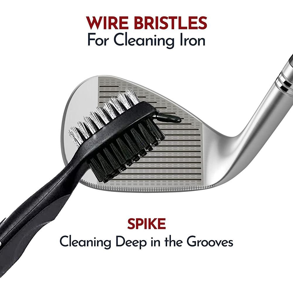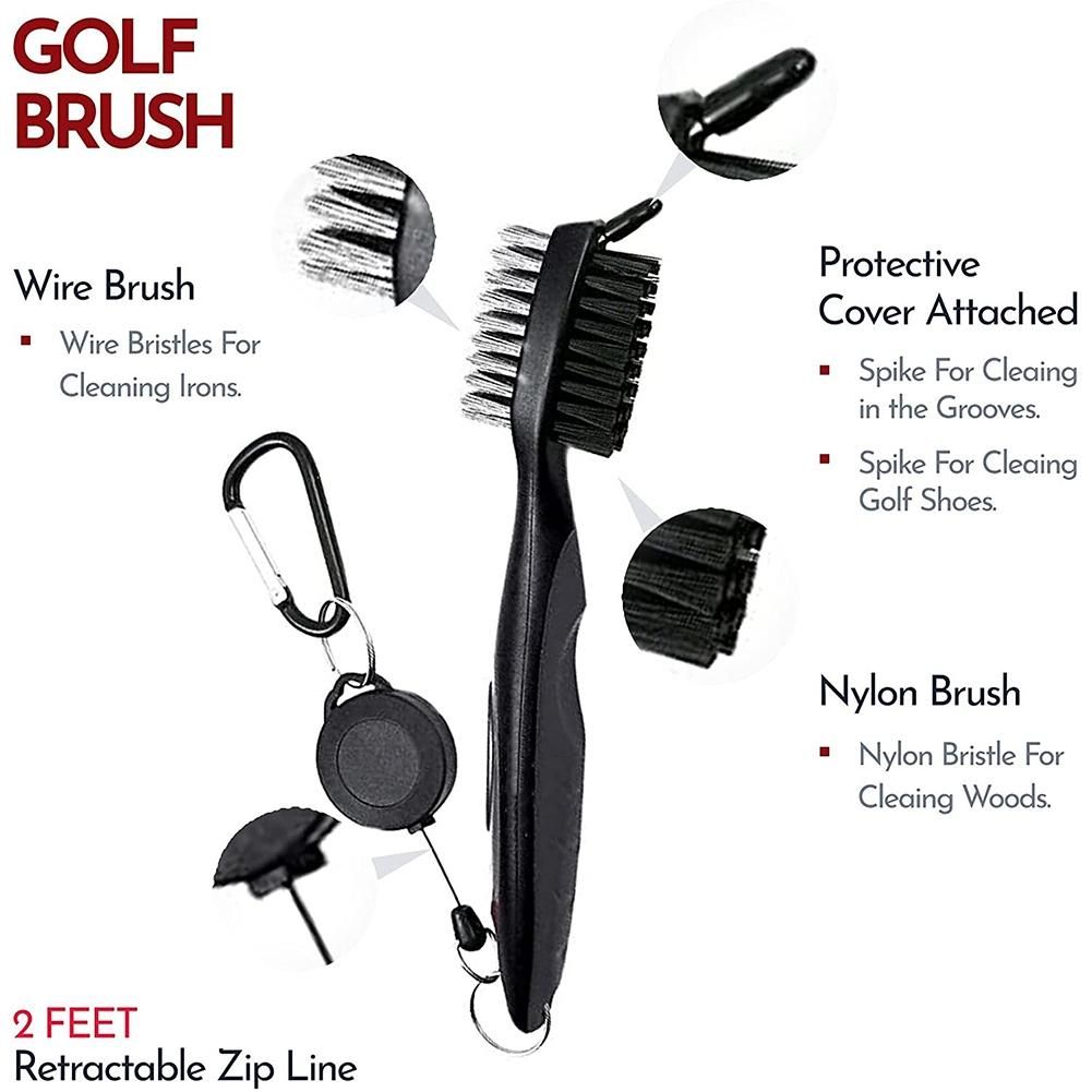 Golf Brush: Golf brush with golf towel that wipes off tough dirt easily for any iron/wood and from your shoes also without scratches from both sides.