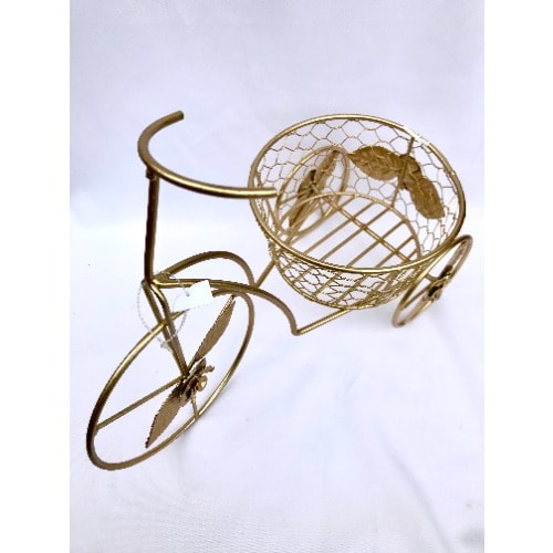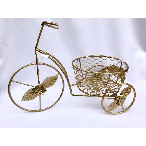 Add a touch of whimsy to your home with the Tricycle Plant Stand Flower Stand Decoration Metal Bike Planter. This freestanding planter features a natural patina and is weather resistant, making it ideal for the porch or foyer.- Durable metal construction- Powder-coated finish helps protect against weathering- For indoor or outdoor use- Elegant patina appearanceTricycle planter holds one, 10-inch pot (not included)Protected with a baked-on, powder-coated finishFeatures durable, heavy gauge metal constructionProtective hard rubber feet includedDimensions: 22L x 10W x 19H inches