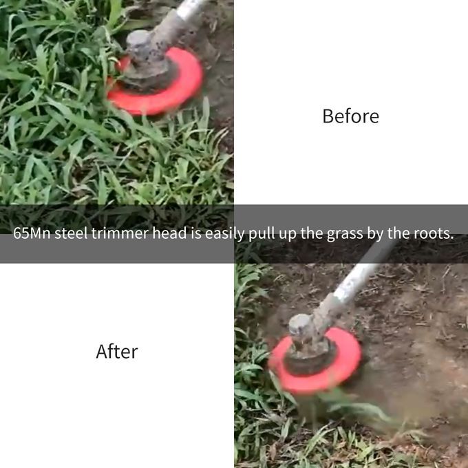 The trimmer head is made of premium 65Mn steel materials, rust-proof and durable, scratch-resistant and resistant to deformation. In the case of resistance such as stones, the blade can be freely stretched, more evenly cut, and more thoroughly weeded. Easy to install and convenient to use.