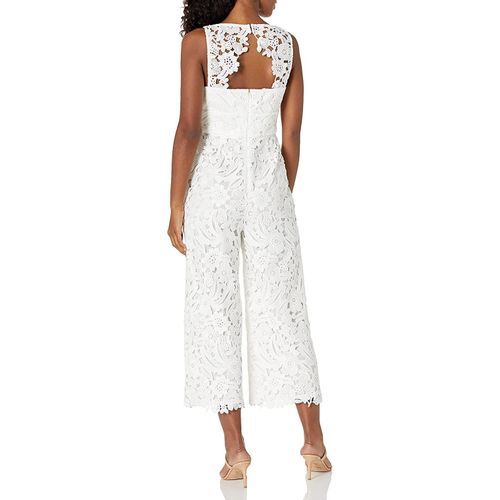 Clover is a v neck culotte leg jumpsuit made up in donna Bella lace.