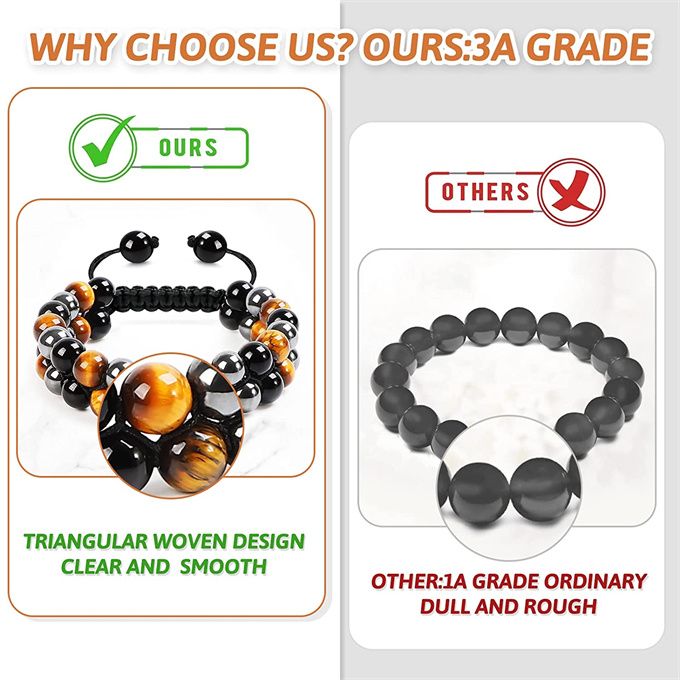 【Quality Natural Material】 This triple protection bracelet is made of a combination of natural black obsidian stones, tiger eye, and hematite stones. All stones are hand selected for quality and brilliance, no need to worry about fading and breakage, this natural material is environmentally friendly and protects your body. ★NOTE★: The brightness of each natural bead will be different, and the color of the picture will vary with various monitor.