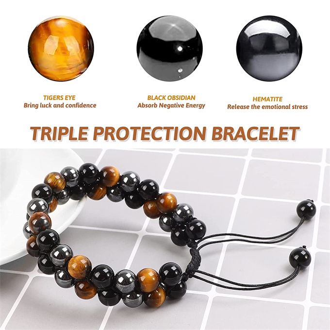 Triple Protection Bracelet for Men and Women【Triple Protection Stone Bracelet】This crystal bracelet contains genuine tiger eye, hematite and black obsidian stones, giving you triple protection, relax your emotion, bring good luck and spiritual protection energy. Each bracelet is carefully made with powerful crystals stones transmuting positive energy- bringing you confidence, peace, brave, and balance.