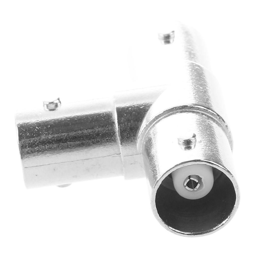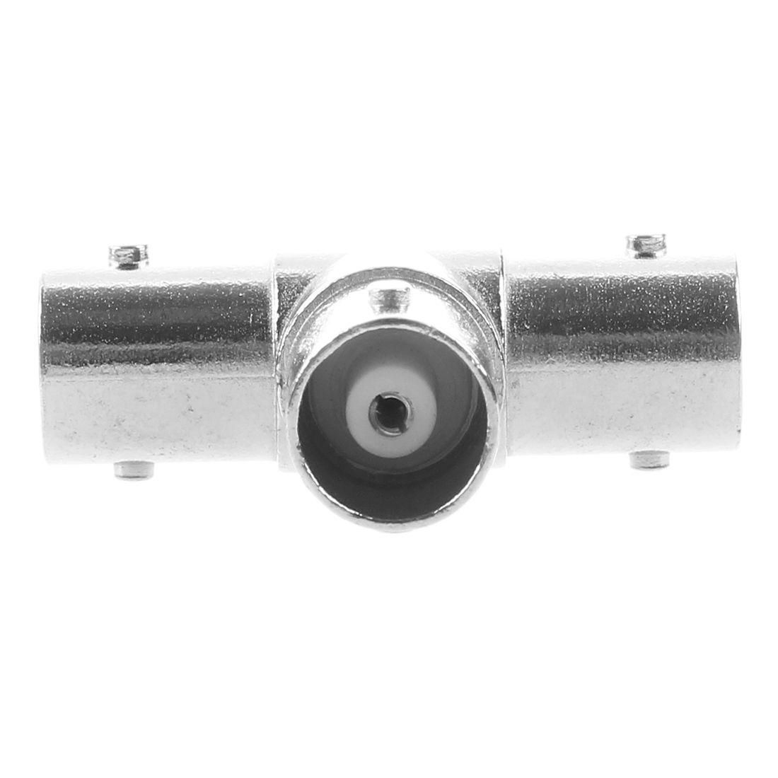 Triple Female BNC F T RF Coaxial Adapter Connector Splitter Product Name: Type BNC Adapter; Material: Metal. Color: Silver Tone; Type: 1 Female to 2 Female. Diameter: 0.9cm; Size: 1.25""L x 0.8""W. Weight: 10.1g; Package Content: 1 x T Type BNC Adapter. This is a BNC female to double female adapter, usually use for CCTV system.