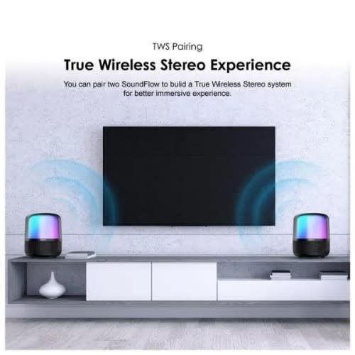 The speaker uses Bluetooth 5.0 to wirelessly stream music from your phone, tablet or notebook. With the help of Bluetooth, this speaker can be controlled completely wirelessly up to 10 meters via your smartphone.