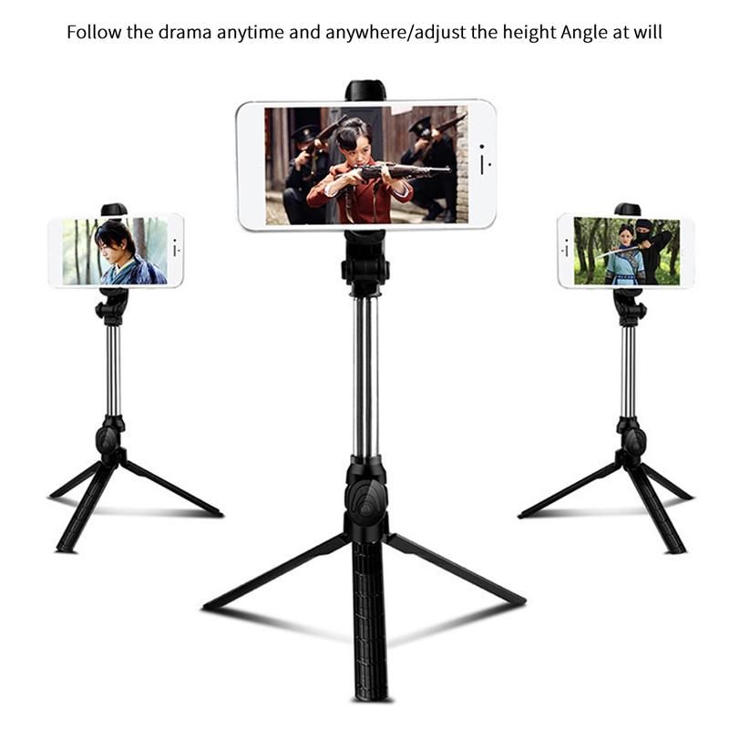 【Selfie Stick Tripod With Wireless Remote】2-in-1 selfie stick tripod with built-in wireless remote (max:33ft ) allows you take selfie-photography or you can separate the remote control to take group photos like parties, graduation, wedding, travel. You can use it as a regular selfie stick or as a quick and easy tripod. **Note**: Under tripod mode, the center of gravity of cellphone must be kept in line with the selfie stick. The lower the height of extendable rod, the better the stability