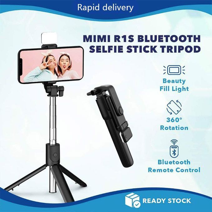Durable And Portable Selfie Stick Tripod With Fill Beauty Light And Wireless Bluetooth Remote Compactible with ios & Andriod Smartphones.