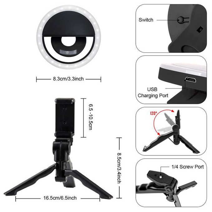 -Packing list:Selfie x1,Ring Light x1,Phone Holder x1,USB Cable x1"