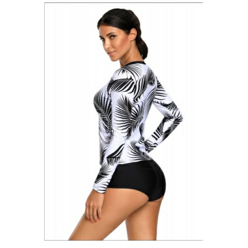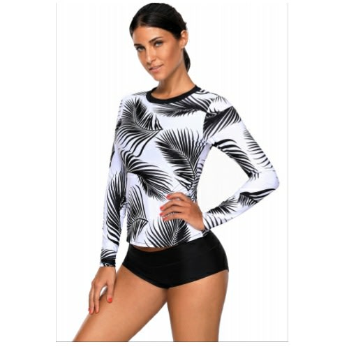 Buy Tropical Leaf Print Long Sleeve Rashguard Swim Top in Nigeria