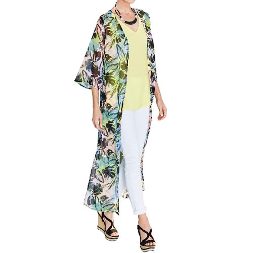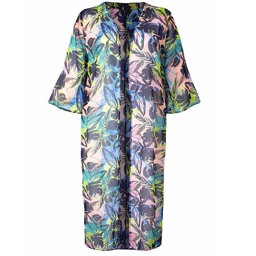Buy Tropical Palm Print Longline Duster Kimono Cover-up - Plus Size 16 in Nigeria