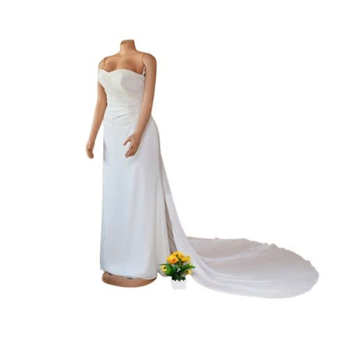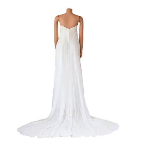 Sweet and sexy, this halter neck twist has a fitted bodice with beads to the front and back panels featuring layered designs perfectly placed on the illusions. Also at the back has a soft train down from the bodice to the hem of the skirt. It’s romantic, floaty and will make you feel like a grown-up princess.