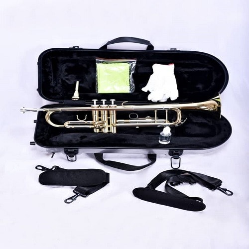 The trumpet is an Ideal for beginners and professional musicians. This trumpet features a phosphorus copper lead mouth pipe, topped with 3 comfortable white mother of pearl key inlaid and 3 smooth action valves. Every trumpet is checked to ensure that their high quality standards are met. This is why thousands of instructors have approved these trumpets. This trumpet package includes a plush-lined nylon covered hard shell case, a pair of gloves, a soft cleaning cloth mouth piece. Buy with confidence.