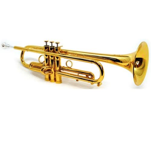 Gold lacquered Bb trumpet with 7C mouth piece 0.46 inch bore & 5 inch bell, 1st valve slide thumb saddle, red valve slide with adjustable throw ring phosphorus copper used on lead mouth pipe (found on expensive trumpets ), smooth action valves, & comfortable white faux mother of pearl inlaid buttons includes : a case, soft polishing cloth, and a pair of white gloves.