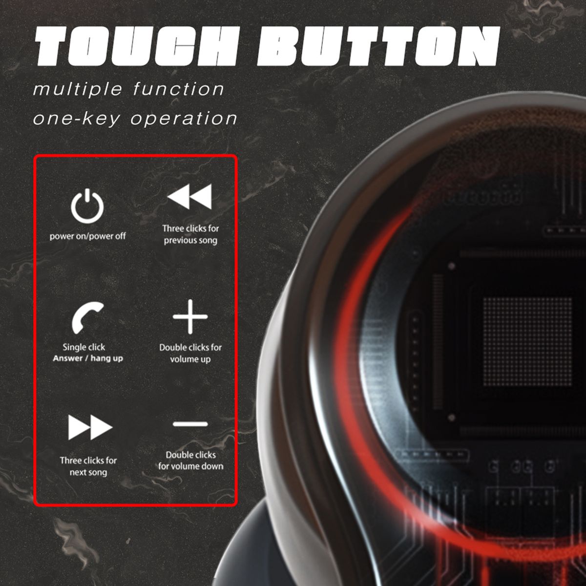 Touch control of turn on/off, answer/hangup, last/next song, volume increase/decrease.