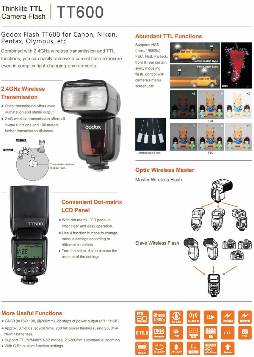 Godox TT600 Speedlite Flash with Built-in 2.4G Wireless Transmission for Canon, Nikon, Pentax, Olympus and Other Digital Cameras with Standard Hotshoe |
