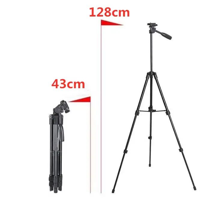 A universal camera phone holder tripod tripod for taking stable photos and / or movies. Because this tripod has a telephone holder that you can screw onto a standard 1/4 inch camera screw, it is possible to use the tripod for your phone or for your camera, provided that the camera has a standard 1/4 inch camera screw. The tripod is made of aluminum and ABS, this makes the tripod lightweight and can easily take your tripod anywhere. The inside of the phone holder is covered with a soft cushion, so that your phone cannot be damaged once it is clamped in the holder. The tripod has a base height of 45 cm, but you can extend the legs to a length of 128 cm.