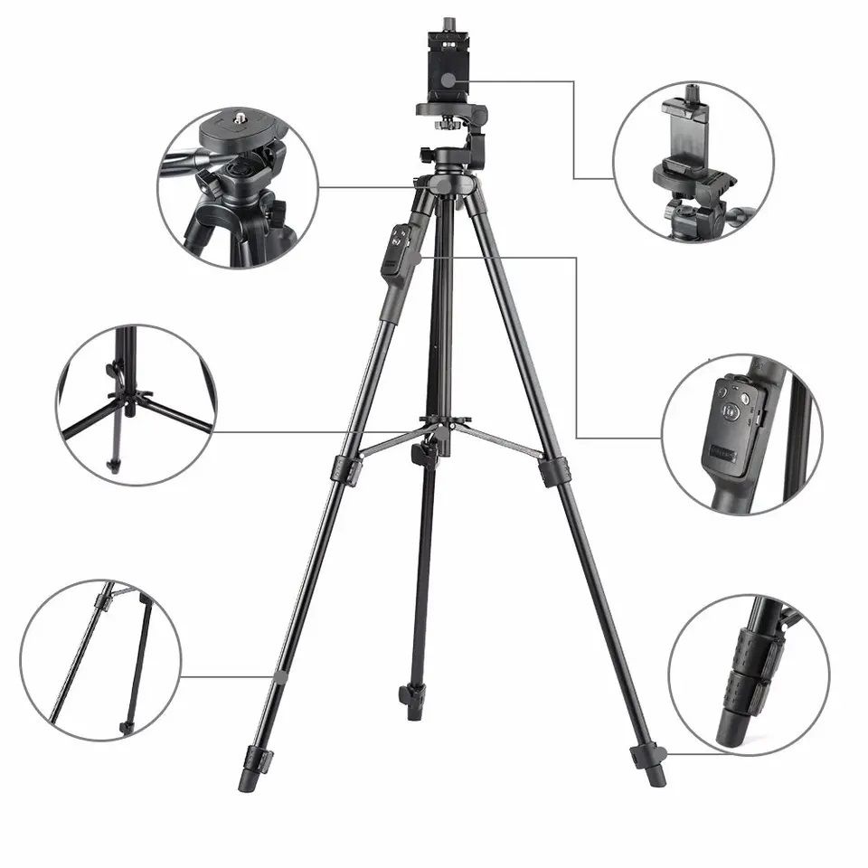 You can make the most beautiful photos and videos because the tripod has a 3-way pan head, which makes it possible to rotate the tripod's head 360 degrees. In addition, you can also lift the head of the tripod up and down.