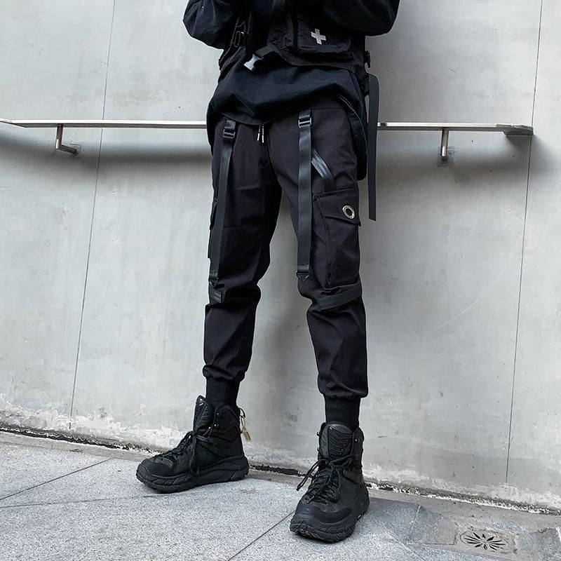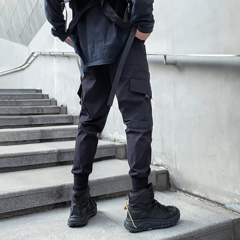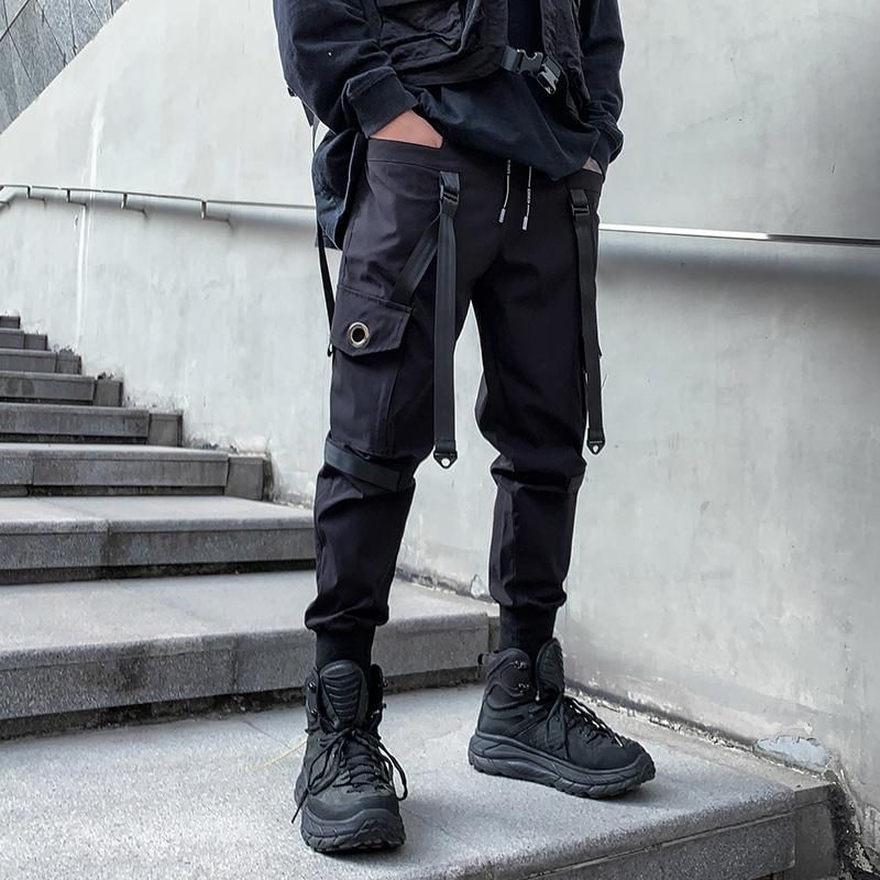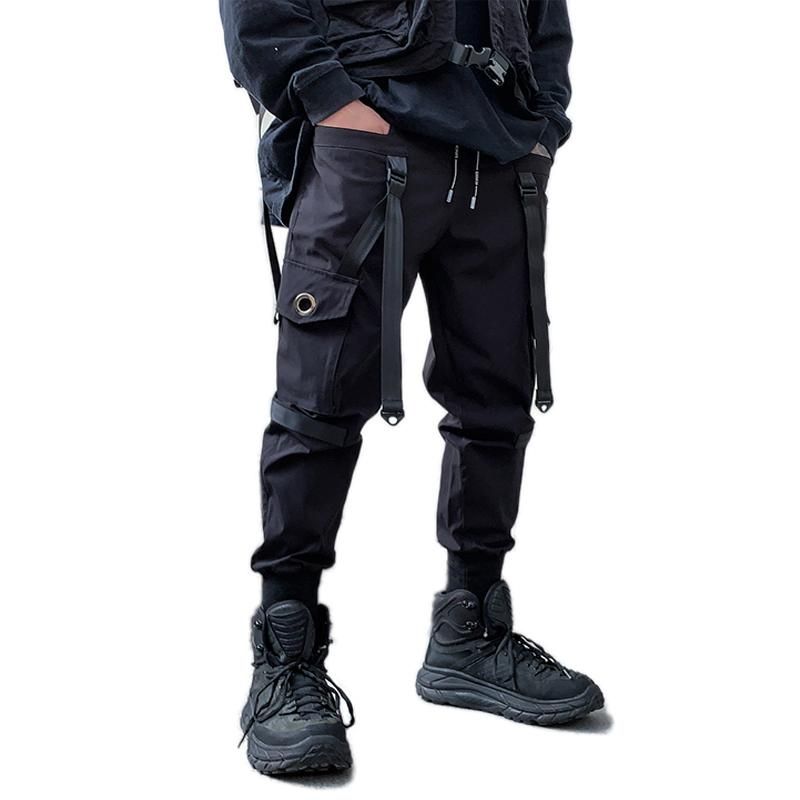 Pantalones de tubo con multiples bolsillos para hombre pantalon de chandal rasgado con cintas de Hip Hop Punk a la moda longitud completa nuevo