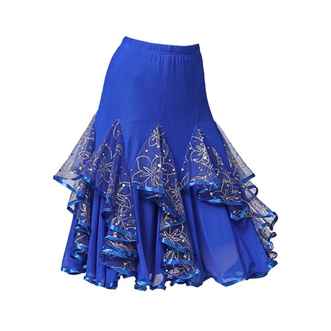 Flamenco Ballroom Waltz Dance Big Swing Skirt Sequined Modern Costumes Royal Blue