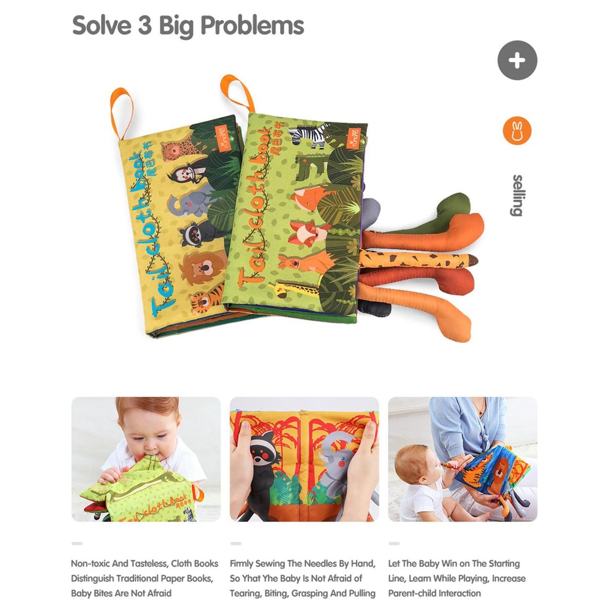 3:3D animal tail in different material to inspire baby's sense of touch