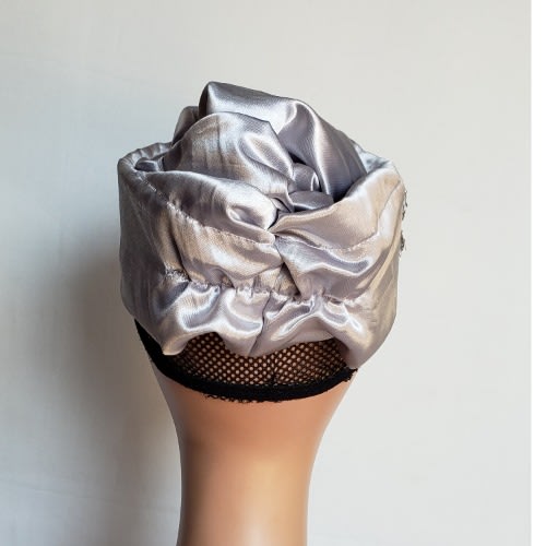 How to wear a turban: Basically to get a proper defined bound behind the turban as well as a full head, always wear a cap first and the wrap with an ordinary scarf, then wear your beautiful turban and wrap round as desired.Tuck in the remaing end as desired.