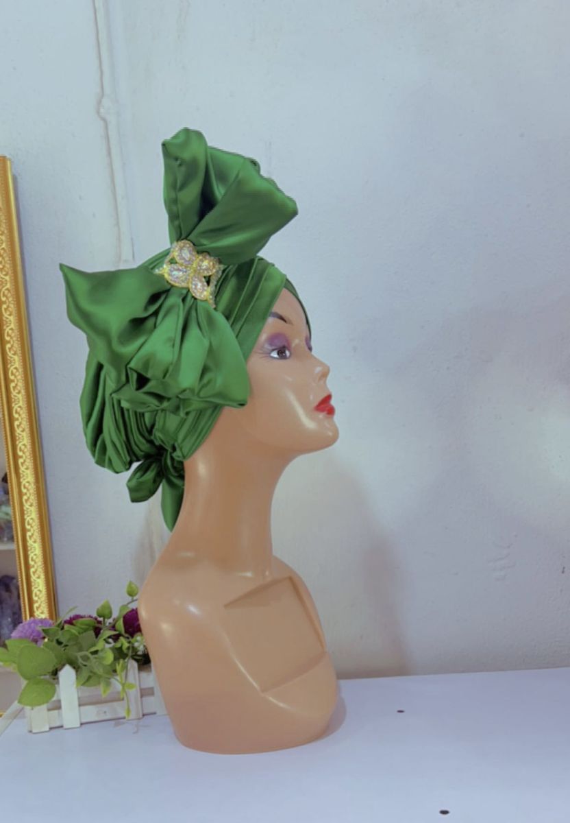 Turban gele is made for women of style. Its made of finest material in form of cap, so as to make it easy to wear. it gives perfect fitting and its neatly finished.Its well embellished to give it that attractive look. It can be worn to church and other special occasion.
