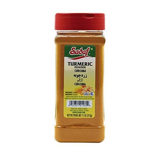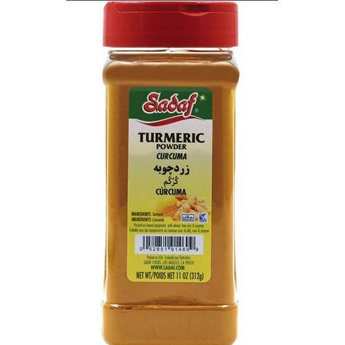 Turmeric Powder Turmeric is used in the Asian & Middle Eastern cuisine to spice meat, particularly lamb, and vegetables. It has a smokey earthy taste and provides the associated yellow color. Ingredients: Turmeric OAllergen: Packed on shared equipment with wheat, tree nuts, soy and sesame.O Turmeric Lemon Chicken (Serves 4): Great lemon flavored chicken recipe. Serve with the onions for more flavor. A bit tart and very tender. 8 hours is marinade time. 1 chicken, cut up 1 cup Sadaf lemon juice 1 teaspoon ground turmeric 3-4 cloves garlic, minced 1 large onion, sliced into rings salt and pepper Direction: Combine lemon juice, turmeric, garlic and onion in a large bowl. Add Chicken, turning to coat with marinade. Marinate in fridge for 8 hours or overnight, turning occasionally so marinade covers the entire chicken. Remove chicken from marinade. Sprinkle lightly with salt and pepper. Grill or broil chicken and onions until done, turning once. Serve topped with onions. Kosher: RCC Packed in USA