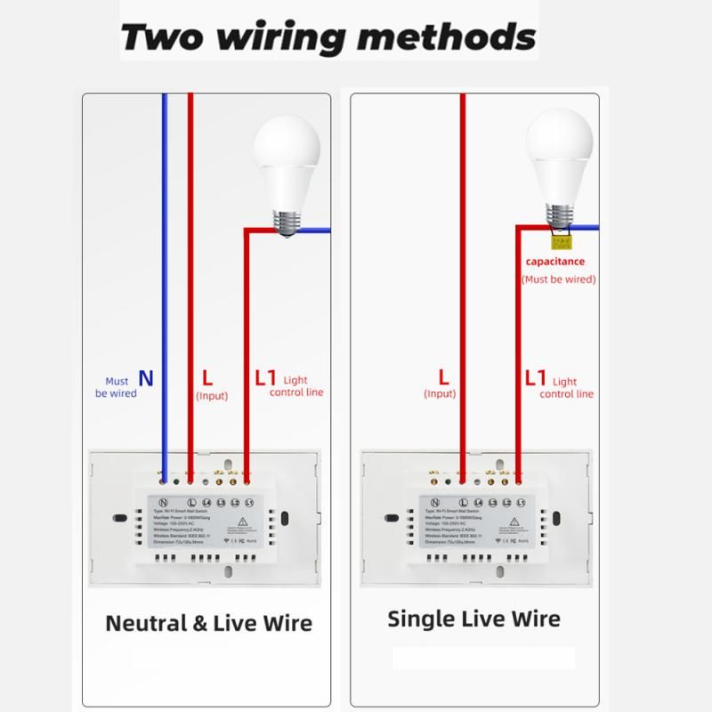 【TWO wiring methods】Support Neutral system and No Neutral system.Support single fire system,but you need a capacitor when you use No Neutral system.(capacitor is included.)