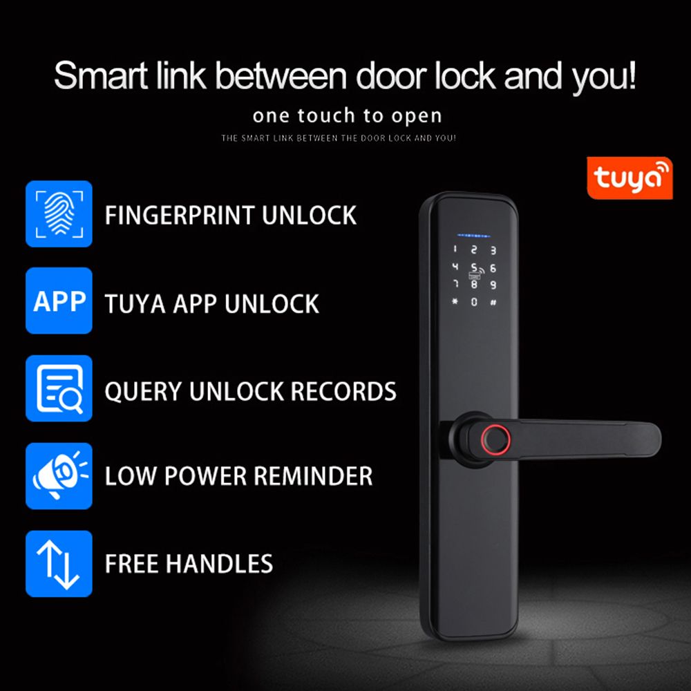 Unlock Methods: Tuya APP(BLE), Fingerprint, Card, Password, Key