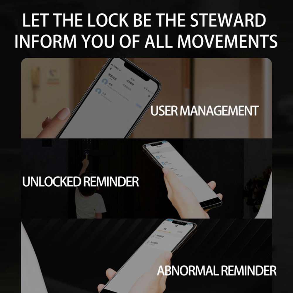 Overview:This fingerprint lock is suitable for all kinds of doors. Easy for you to install. We take advantage of our previous experience to make it easier, more convenient and user-friendly. Support smart lock & APP for user management.