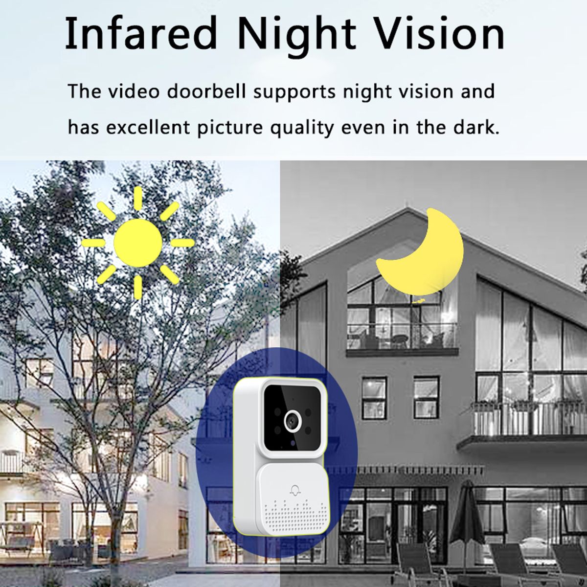 Wireless Video Doorbell Camera: Support 2.4G WiFi and APP connection, 480P high resolution, presenting you clearer pictures & videos and more details. 2-Way Audio: With built-in mic, you can see and talk to your visitors at anytime and anywhere.