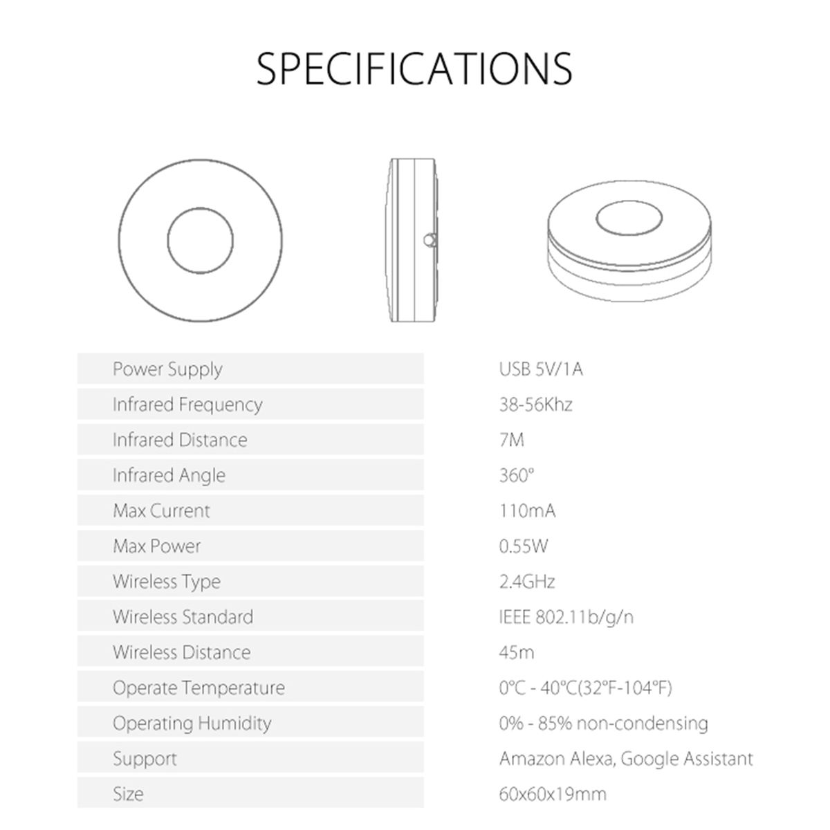 Supports all IR devices including air conditioners, TVs, LEDs, Fans, DVD players, etc.